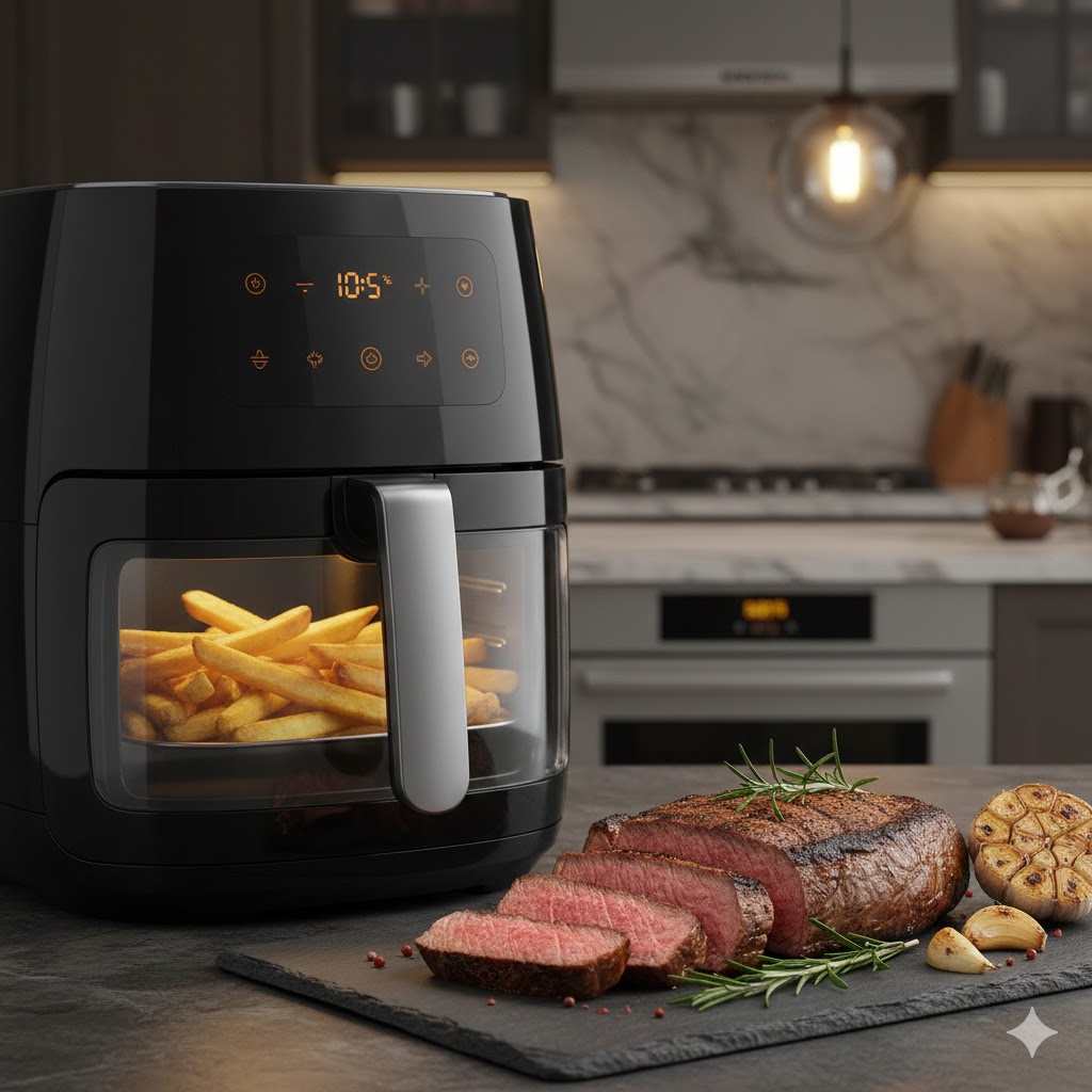 Frites, poulet, légumes, et même des gâteaux ! C’est un appareil polyvalent qui remplace avantageusement le four et la poêle sans la saleté associée.